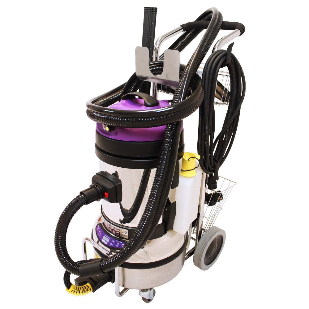 Verona HRC to profesjonalny odkurzacz parowy łączący czyszczenie parą z jednoczesnym odsysaniem zabrudzeń. Urządzenie sprawdza się w myjniach, przemyśle oraz gastronomii, umożliwiając skuteczne usuwanie tłuszczów, osadów i zanieczyszczeń z powierzchni roboczych, maszyn i posadzek. Połączenie pary i odkurzania pozwala utrzymać wysoki poziom higieny przy minimalnym zużyciu wody i krótkim czasie schnięcia.